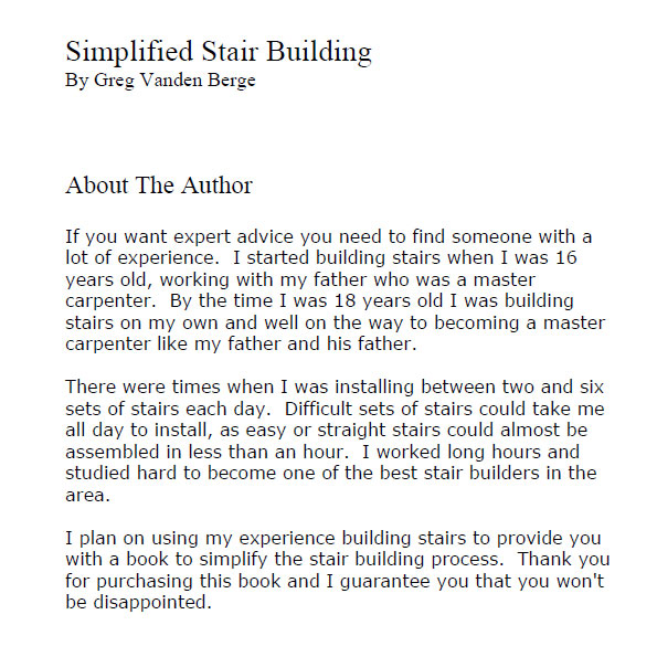 Table of Contents About Author Introduction Disclaimer Look Inside Book Stair Construction Videos Stairway Building Articles Stair Builder Tools Stair Building Information Contact Disclaimer Copyright © 2012 All Rights Reserved |